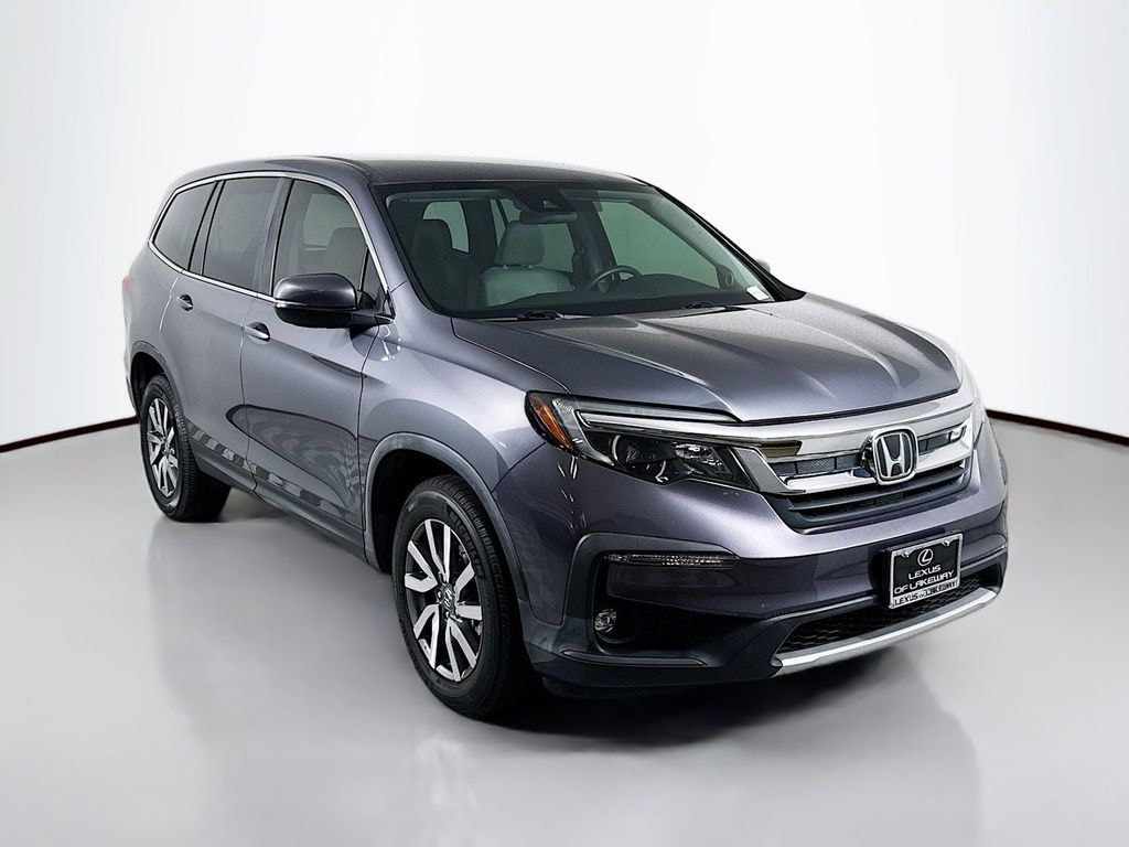 2020 Honda Pilot EX CARFAX One-Owner. AWD, 18 Machine-Finished Alloy Wheels, 3rd row seats: split-bench, 4-Wheel Disc Brakes, 4.25 Axle Ratio, 7 Speakers, A/V remote: CabinControl, ABS brakes, Air Conditioning, Alloy wheels, AM/FM radio: SiriusXM, Apple CarPlay/Android Auto, Auto High-beam Headlights, Automatic temperature control, Blind Spot Information (BSI) System warning, Brake assist, Bumpers: body-color, Cloth Seat Trim, Delay-off headlights, Driver door bin, Driver vanity mirror, Dual front impact airbags, Dual front side impact airbags, Electronic Stability Control, Emergency communication system: HondaLink Assist, Exterior Parking Camera Rear, Forward collision: Collision Mitigation Braking System (CMBS) + FCW mitigation, Four wheel independent suspension, Front anti-roll bar, Front Bucket Seats, Front Center Armrest, Front dual zone A/C, Front fog lights, Front reading lights, Fully automatic headlights, Heated door mirrors, Heated Front Bucket Seats, Heated front seats, Illuminated entry, Lane departure: Lane Keeping Assist System (LKAS) active, Low tire pressure warning, Occupant sensing airbag, Outside temperature display, Overhead airbag, Overhead console, Panic alarm, Passenger door bin, Passenger vanity mirror, Power door mirrors, Power driver seat, Power steering, Power windows, Radio data system, Radio: 215-Watt Audio System, Rear air conditioning, Rear anti-roll bar, Rear reading lights, Rear seat center armrest, Rear window defroster, Rear window wiper, Reclining 3rd row seat, Remote keyless entry, Security system, Speed control, Speed-sensing steering, Speed-Sensitive Wipers, Split folding rear seat, Spoiler, Steering wheel mounted audio controls, Tachometer, Telescoping steering wheel, Tilt steering wheel, Traction control, Trip computer, Turn signal indicator mirrors, Variably intermittent wipers, AWD. Modern Steel 2020 Honda Pilot EX AWD 6-Speed Automatic 3.5L V6 24V SOHC i-VTEC