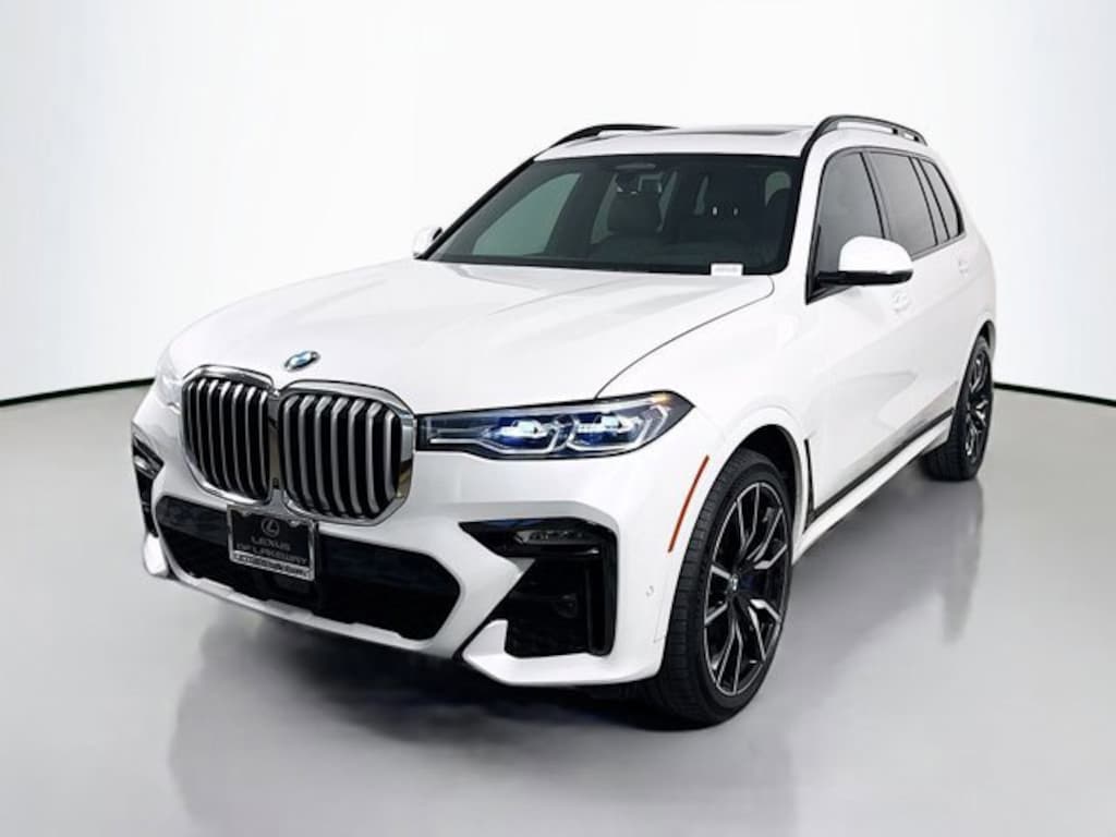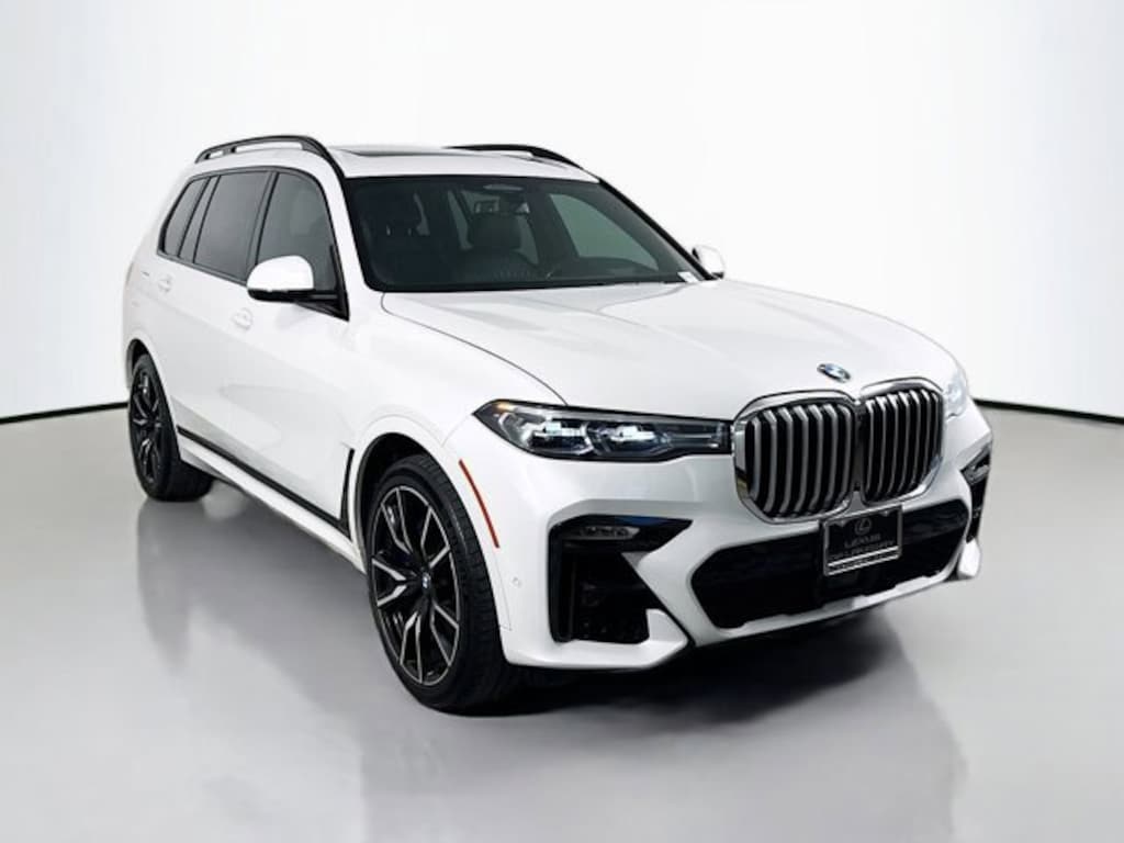 2020 BMW X7 xDrive40i CARFAX One-Owner. 10 Speakers, 3.64 Axle Ratio, 3rd row seats: split-bench, 4-Wheel Disc Brakes, 5-Zone Automatic Climate Control, ABS brakes, Active Comfort Drive w/Road Preview, Active Driving Assistant Pro, Aerodynamic Kit, Air Conditioning, Alloy wheels, AM/FM radio: SiriusXM, AM/FM Stereo, Anthracite Alcantara Headliner, Apple CarPlay Compatibility, Auto High-beam Headlights, Auto tilt-away steering wheel, Auto-dimming door mirrors, Auto-dimming Rear-View mirror, Auto-leveling suspension, Automatic temperature control, Brake assist, Bumpers: body-color, Cold Weather Package, Compass, Delay-off headlights, Drive Recorder, Driver door bin, Driver vanity mirror, Driving Assistance Professional Package, Dual front impact airbags, Dual front side impact airbags, Dynamic Handling Package, Electronic Stability Control, Emergency communication system: BMW Assist eCall, Executive Package, Extended Traffic Jam Assistant, Exterior Parking Camera Rear, Four wheel independent suspension, Front & Rear Heated Seats, Front anti-roll bar, Front Bucket Seats, Front Center Armrest, Front dual zone A/C, Front fog lights, Front Massaging Seats, Front reading lights, Front Ventilated Seats, Fully automatic headlights, Garage door transmitter, Genuine wood console insert, Genuine wood dashboard insert, Genuine wood door panel insert, Gesture Control, Glass Controls, harman/kardon Surround Sound System, Head restraints memory, Head-Up Display, Heated & Cooled Cup Holders, Heated door mirrors, Heated Front Seats, Heated front seats, Heated Front Seats Armrests & Steering Wheel, Hi-Fi Sound System, High-Gloss Shadowline Roof Rails, Illuminated entry, Integral Active Steering, Knee airbag, Leather Dashboard, Leather Shift Knob, Low tire pressure warning, Lumbar Support, Luxury Seating Package, M Sport Brakes, M Sport Package, M Sport Package (337), M Steering Wheel, Memory seat, Multi-Contour Seats, Navigation System, Night Vision w/Pedestrian Detection, Occupant sensing airbag, Outside temperature display, Overhead airbag, Panic alarm, Panoramic Sky Lounge LED Roof, Parking Assistance Package, Parking Assistant Plus, Passenger door bin, Passenger vanity mirror, Power adjustable front head restraints, Power door mirrors, Power driver seat, Power Front Seats, Power moonroof, Power passenger seat, Power steering, Power windows, Radio data system, Rain sensing wipers, Rear air conditioning, Rear anti-roll bar, Rear dual zone A/C, Rear Electric Side Window Shades, Rear reading lights, Rear seat center armrest, Rear window defroster, Rear window wiper, Rear-View Camera, Reclining 3rd row seat, Remote Engine Start, Remote keyless entry, Roof rack: rails only, Security system, SensaTec Upholstery, Shadowline Exterior Trim, SiriusXM Satellite Radio, Soft-Close Automatic Doors, Speed control, Speed-sensing steering, Speed-Sensitive Wipers, Split folding rear seat, Spoiler, Sport Seats, Sport steering wheel, Steering wheel memory, Steering wheel mounted audio controls, Surround View w/3D View, Tachometer, Telescoping steering wheel, Tilt steering wheel, Traction control, Trailer Hitch - 7,500 lb Towing Limit, Trip computer, Turn signal indicator mirrors, Variably intermittent wipers, Vernasca Leather Upholstery w/Contrast Stitching, Wheels: 21 x 9.5 Double-Spoke Bi-Color Orbit Grey, Wheels: 21 x 9.5 Y-Spoke Bi-Color (Style 753), Wheels: 22 x 9.5 Fr & 22 x 10.5 Rr V-Spoke, Without Lines Designation Outside. Mineral White Metallic 2020 BMW X7 xDrive40i AWD 8-Speed Automatic 3.0L I6 DOHC 24V