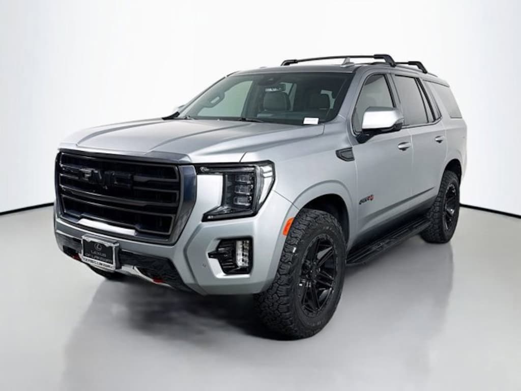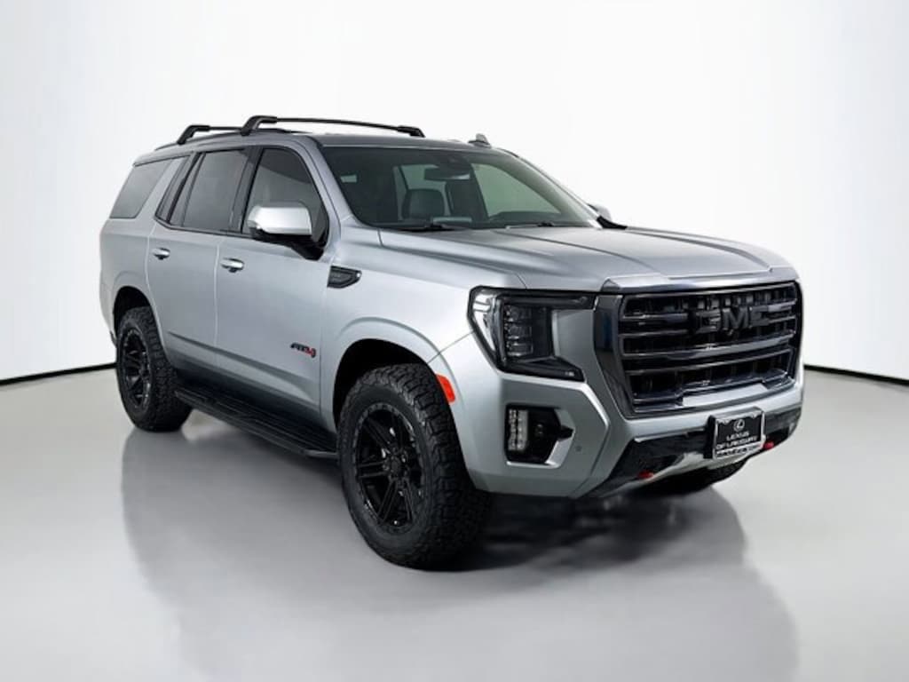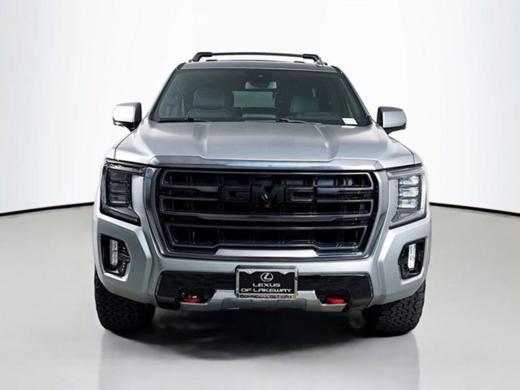 2024 GMC Yukon AT4 CARFAX One-Owner. 4WD, 12-Way Power Seat Adjusters, 15 Diagonal Multi-Color Head-Up Display, 2 Presets For Outside Rearview Mirrors, 3.23 Rear Axle Ratio, 3rd Row 60/40 Power-Folding Split-Bench Seat, 3rd row seats: split-bench, 4-Wheel Disc Brakes, 9 Speakers, ABS brakes, Adaptive suspension, Air Conditioning, Alloy wheels, AM/FM radio: SiriusXM with 360L, AM/FM Stereo, Apple CarPlay/Android Auto, Auto High-beam Headlights, Auto-dimming door mirrors, Auto-dimming Rear-View mirror, Automatic Emergency Braking, Automatic temperature control, Black Nameplates (LPO), Black Roof Rack Cross Rails, Black Roof-Mounted Luggage Rack Side Rails, Bose 9-Speaker Stereo Audio System Feature, Brake assist, Bright Front & Rear Door Sill Plates, Bumpers: body-color, Compass, Delay-off headlights, Driver door bin, Driver vanity mirror, Dual Exhaust System, Dual front impact airbags, Dual front side impact airbags, Dual-Pane Panoramic Power Sunroof, Electronic Stability Control, Emergency communication system: OnStar and GMC connected services capable, Following Distance Indicator, Forward Collision Alert, Four wheel independent suspension, Front & Rear Park Assist, Front anti-roll bar, Front Bucket Seats, Front Center Armrest, Front dual zone A/C, Front fog lights, Front High-Approach Angle Fascia, Front Pedestrian Braking, Front reading lights, Fully automatic headlights, Garage door transmitter, Hands-Free Power Programmable Rear Liftgate, HD Surround Vision, Heated 2nd Row Outboard Position Seats, Heated door mirrors, Heated Driver & Front Passenger Seats, Heated front seats, Heated rear seats, Heated Steering Wheel, Heated steering wheel, Heavy-Duty Air Filter, Hill Descent Control, Illuminated entry, Inside Rear-View Auto-Dimming Mirror, IntelliBeam Automatic High Beam On/Off, Lane Change Alert w/Side Blind Zone Alert, Lane Keep Assist w/Lane Departure Warning, License Plate Front Mounting Package, Low tire pressure warning, Magnetic Ride Control Suspension, Memory seat, Navigation System, Occupant sensing airbag, Outside Heated Power-Adjustable Mirrors, Outside temperature display, Overhead airbag, Overhead console, Panic alarm, Passenger door bin, Passenger vanity mirror, Perforated Heated & Ventilated Dr & Frt Pass Seats, Perforated Leather Seating Surfaces, Power door mirrors, Power driver seat, Power Liftgate, Power passenger seat, Power Release 2nd Row 60/40 Split-Folding Bench Seat, Power Release 2nd Row Bucket Seats, Power steering, Power Tilt & Telescopic Steering Column, Power windows, Preferred Equipment Group 4SB, Rain sensing wipers, Rear air conditioning, Rear anti-roll bar, Rear Cross Traffic Alert, Rear Pedestrian Alert, Rear reading lights, Rear seat center armrest, Rear window defroster, Rear window wiper, Red Horizontal-Mounted Recovery Hooks, Remote keyless entry, Roof rack: rails only, Safety Alert Seat, Security system, SiriusXM w/360L, Speed control, Speed-sensing steering, Split folding rear seat, Spoiler, Steering wheel memory, Steering wheel mounted audio controls, Tachometer, Technology Package, Telescoping steering wheel, Tilt steering wheel, Traction control, Trip computer, Turn signal indicator mirrors, Universal Home Remote, Variably intermittent wipers, Ventilated front seats, Voltmeter, Wheels: 20 x 9 6-Spoke Machined Aluminum, Wireless Charging, 4WD. Sterling Metallic 2024 GMC Yukon AT4 4WD 10-Speed Automatic with Overdrive EcoTec3 6.2L V8