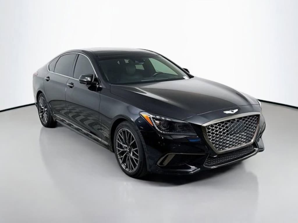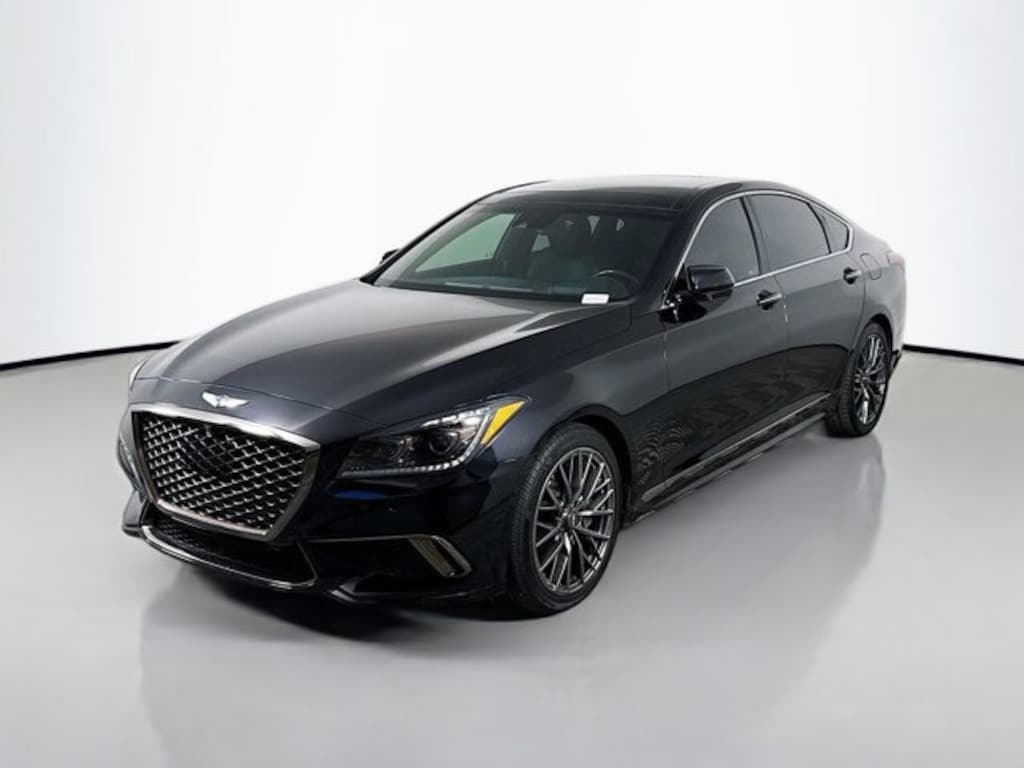 2018 Genesis G80 3.3T Sport Clean CARFAX. 12-Way Power Heated & Vented Sport Front Seats, 17 Speakers, 4-Wheel Disc Brakes, ABS brakes, Adaptive suspension, Air Conditioning, Alloy wheels, AM/FM radio: SiriusXM, Android Auto & Apple CarPlay, Anti-whiplash front head restraints, Auto High-beam Headlights, Auto tilt-away steering wheel, Auto-dimming door mirrors, Auto-dimming Rear-View mirror, Auto-leveling suspension, Automatic temperature control, Bodyside moldings, Brake assist, Bumpers: body-color, CD player, Compass, Delay-off headlights, Driver door bin, Driver vanity mirror, Dual front impact airbags, Dual front side impact airbags, DVD-Audio, Electronic Stability Control, Emergency communication system: Genesis Connected Services, Four wheel independent suspension, Front anti-roll bar, Front Bucket Seats, Front Center Armrest, Front dual zone A/C, Front fog lights, Front reading lights, Fully automatic headlights, Garage door transmitter: HomeLink, Heads-Up Display, Heated door mirrors, Heated front seats, Heated rear seats, Illuminated entry, Knee airbag, Leather Shift Knob, Leather steering wheel, Low tire pressure warning, Memory seat, Navigation System, Occupant sensing airbag, Outside temperature display, Overhead airbag, Overhead console, Panic alarm, Passenger door bin, Passenger vanity mirror, Power door mirrors, Power driver seat, Power moonroof, Power passenger seat, Power steering, Power windows, Premium Leather Seating Surfaces, Radio data system, Radio: AM/FM/XM/HD/CD/MP3 Audio System, Rain sensing wipers, Rear anti-roll bar, Rear reading lights, Rear seat center armrest, Rear side impact airbag, Rear Window Blind, Rear window defroster, Remote keyless entry, Security system, Speed control, Speed-sensing steering, Speed-Sensitive Wipers, Sport steering wheel, Steering wheel memory, Steering wheel mounted audio controls, Tachometer, Telescoping steering wheel, Tilt steering wheel, Traction control, Trip computer, Turn signal indicator mirrors, Variably intermittent wipers, Ventilated front seats, Wheels: 19 Sport Alloy. Victoria Black 2018 Genesis G80 3.3T Sport RWD 8-Speed Automatic with SHIFTRONIC V6