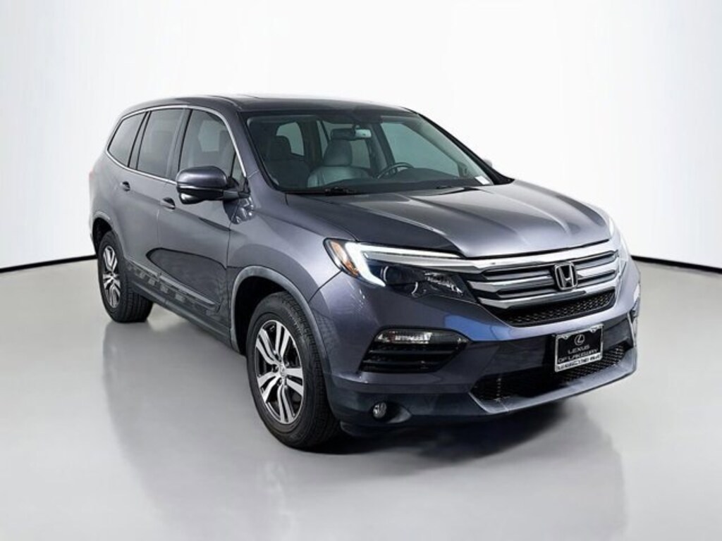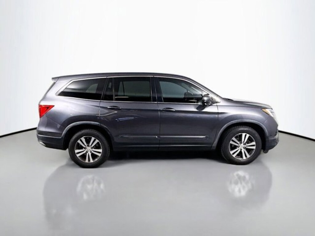 2017 Honda Pilot EX-L CARFAX One-Owner. AWD, 18 Alloy Wheels, 3rd row seats: split-bench, 4-Wheel Disc Brakes, 4.25 Axle Ratio, 7 Speakers, ABS brakes, Air Conditioning, Alloy wheels, AM/FM radio: SiriusXM, Apple CarPlay/Android Auto, Auto-dimming Rear-View mirror, Automatic temperature control, Brake assist, Bumpers: body-color, Compass, Delay-off headlights, Driver door bin, Driver vanity mirror, Dual front impact airbags, Dual front side impact airbags, Electronic Stability Control, Emergency communication system: HondaLink Assist, Exterior Parking Camera Rear, Four wheel independent suspension, Front anti-roll bar, Front Bucket Seats, Front Center Armrest, Front dual zone A/C, Front fog lights, Front reading lights, Fully automatic headlights, Garage door transmitter: HomeLink, Heated door mirrors, Heated Front Bucket Seats, Heated front seats, Illuminated entry, Leather Shift Knob, Leather-Trimmed Seats, Low tire pressure warning, Occupant sensing airbag, Outside temperature display, Overhead airbag, Overhead console, Panic alarm, Passenger door bin, Passenger vanity mirror, Power door mirrors, Power driver seat, Power Liftgate, Power moonroof, Power passenger seat, Power steering, Power windows, Radio data system, Radio: AM/FM Audio System, Rear air conditioning, Rear anti-roll bar, Rear reading lights, Rear seat center armrest, Rear window defroster, Rear window wiper, Remote keyless entry, Security system, SiriusXM Radio, Speed control, Speed-sensing steering, Speed-Sensitive Wipers, Split folding rear seat, Spoiler, Steering wheel mounted audio controls, Tachometer, Telescoping steering wheel, Tilt steering wheel, Traction control, Trip computer, Variably intermittent wipers, AWD. Lunar Silver Metallic 2017 Honda Pilot EX-L AWD 6-Speed Automatic 3.5L V6 24V SOHC i-VTEC
