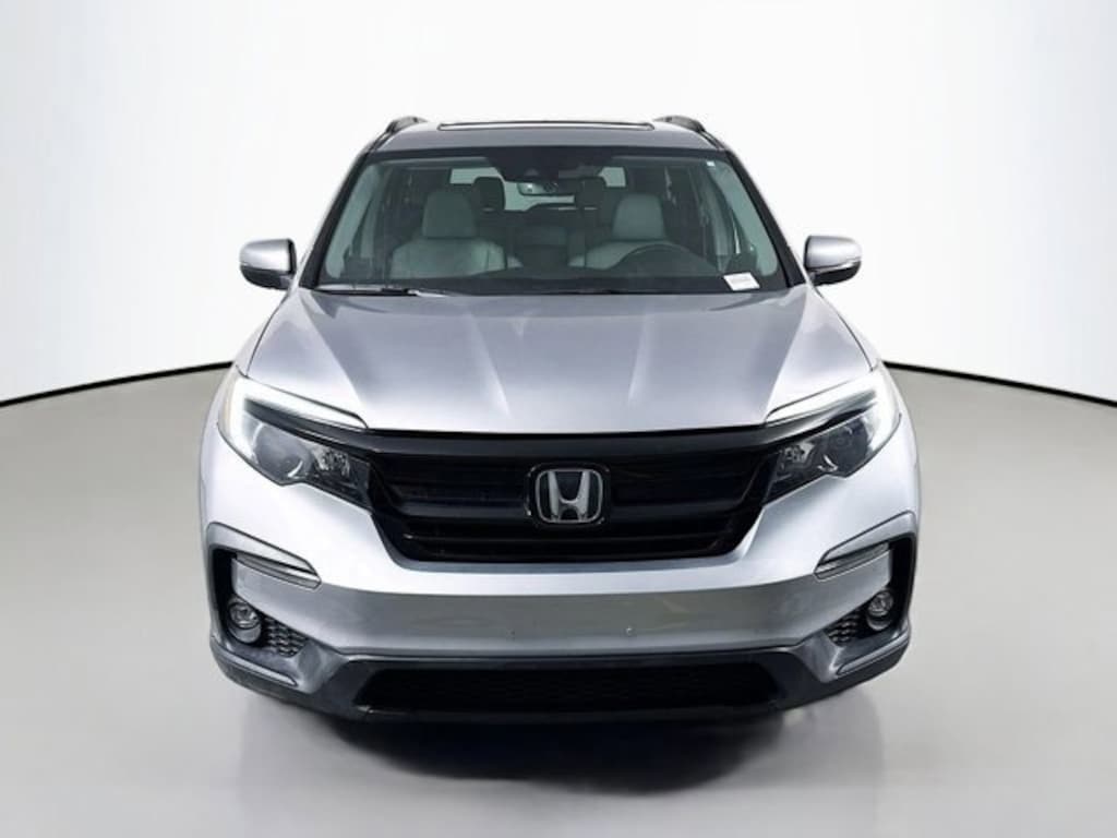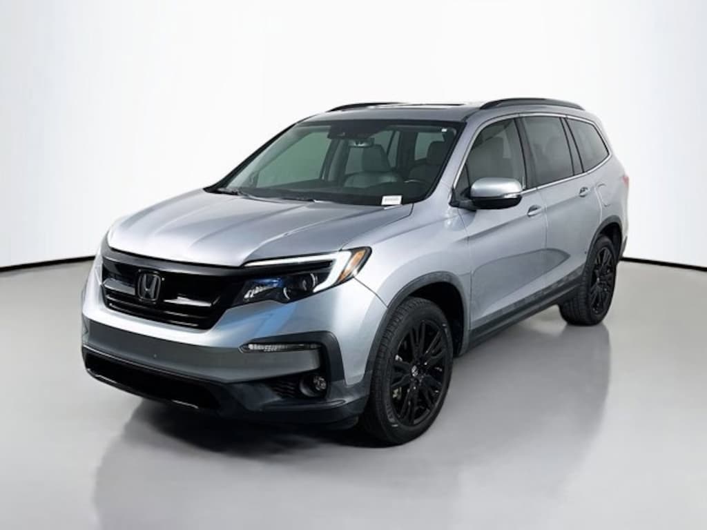 2021 Honda Pilot Special Edition Recent Arrival! Clean CARFAX. CARFAX One-Owner. AWD, 3rd row seats: split-bench, 4-Wheel Disc Brakes, 4.33 Axle Ratio, 7 Speakers, A/V remote: CabinControl, ABS brakes, Air Conditioning, Alloy wheels, AM/FM radio: SiriusXM, Apple CarPlay/Android Auto, Auto High-beam Headlights, Auto-dimming Rear-View mirror, Automatic temperature control, Blind Spot Information (BSI) System warning, Brake assist, Bumpers: body-color, Delay-off headlights, Driver door bin, Driver vanity mirror, Dual front impact airbags, Dual front side impact airbags, Electronic Stability Control, Emergency communication system: HondaLink Assist, Exterior Parking Camera Rear, Forward collision: Collision Mitigation Braking System (CMBS) + FCW mitigation, Four wheel independent suspension, Front anti-roll bar, Front Bucket Seats, Front Center Armrest, Front dual zone A/C, Front fog lights, Front reading lights, Fully automatic headlights, Garage door transmitter: HomeLink, Heated door mirrors, Heated Front Bucket Seats, Heated front seats, Illuminated entry, Lane departure: Lane Keeping Assist System (LKAS) active, Leather Seat Trim, Low tire pressure warning, Memory seat, Occupant sensing airbag, Outside temperature display, Overhead airbag, Overhead console, Panic alarm, Passenger door bin, Passenger vanity mirror, Power door mirrors, Power driver seat, Power Liftgate, Power moonroof, Power passenger seat, Power steering, Power windows, Radio data system, Radio: 215-Watt Audio System, Rear air conditioning, Rear anti-roll bar, Rear reading lights, Rear seat center armrest, Rear window defroster, Rear window wiper, Reclining 3rd row seat, Remote keyless entry, Roof rack: rails only, Security system, Speed control, Speed-sensing steering, Speed-Sensitive Wipers, Split folding rear seat, Spoiler, Steering wheel mounted audio controls, Tachometer, Telescoping steering wheel, Tilt steering wheel, Traction control, Trip computer, Turn signal indicator mirrors, Variably intermittent wipers, Wheels: 20 Exclusive Black-Painted Alloy, AWD. Silver Metallic 2021 Honda Pilot Special Edition AWD 9-Speed Automatic 3.5L V6 24V SOHC i-VTEC