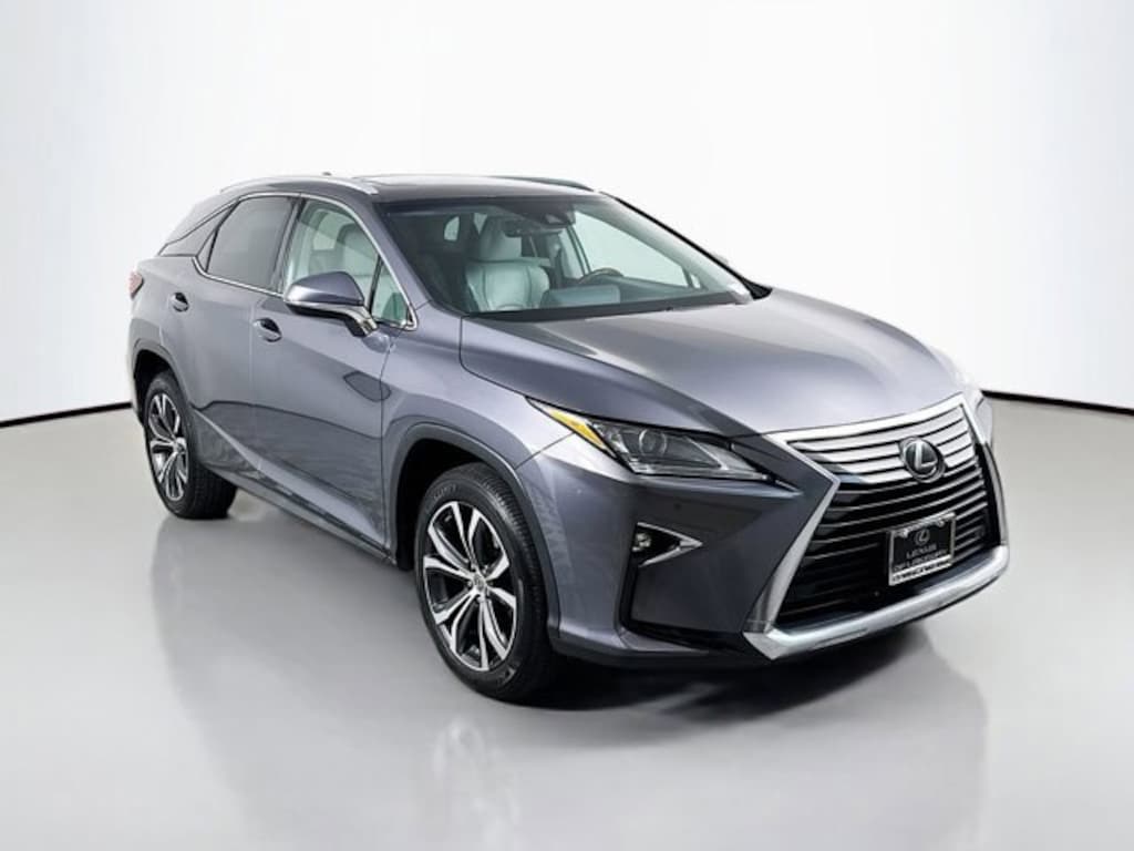 2017 Lexus RX 350 Stratus Gray w/Leather Seat Trim, Aluminum Roof Rails, Driver Seat/Steering/Mirror Memory - 3 Settings, Leather Seat Trim, Navigation System, Premium Package, Rear Armrest Storage Compartment, 12.3 Navigation System, 3.329 Axle Ratio, 3500 lbs Tow Prep Package, 4-Wheel Disc Brakes, 9 Speakers, ABS brakes, Air Conditioning, Alloy wheels, AM/FM radio: SiriusXM, Anti-whiplash front head restraints, Auto High-beam Headlights, Auto-dimming Rear-View mirror, Automatic temperature control, Backup Monitor, Bi-Led Headlamps w/Adaptive Front Lighting System, Blind Spot Monitor w/Rear Cross Traffic Alert, Brake assist, Bumpers: body-color, CD player, Compass, Delay-off headlights, Driver door bin, Driver vanity mirror, Dual front impact airbags, Dual front side impact airbags, Electronic Stability Control, Exterior Parking Camera Rear, Four wheel independent suspension, Front anti-roll bar, Front Bucket Seats, Front Center Armrest, Front dual zone A/C, Front fog lights, Front reading lights, Fully automatic headlights, Garage door transmitter: HomeLink, Heated & Ventilated Front Seats w/HR, Heated door mirrors, Heavy Duty Alternator, Heavy-Duty Radiator, Illuminated entry, Knee airbag, Leather Shift Knob, Leather steering wheel, Lexus Enform App Suite, Lexus Enform Destinations, Low tire pressure warning, NuLuxe Seat Trim, Occupant sensing airbag, Outside temperature display, Overhead airbag, Overhead console, Panic alarm, Passenger door bin, Passenger vanity mirror, Power door mirrors, Power driver seat, Power Folding Heated Rear Seats, Power Liftgate, Power passenger seat, Power steering, Power Tilt & Slide Moonroof, Power windows, Radio data system, Radio: AM/FM/CD Lexus Display Audio, Rain sensing wipers, Rear anti-roll bar, Rear reading lights, Rear seat center armrest, Rear side impact airbag, Rear window defroster, Rear window wiper, Remote keyless entry, Security system, Single-Disc DVD Changer, Speed control, Speed-sensing steering, Split folding rear seat, Spoiler, Steering wheel mounted audio controls, Tachometer, Telescoping steering wheel, Tilt steering wheel, Touch-Free Power Rear Door, Traction control, Transmission Cooler, Trip computer, Turn signal indicator mirrors, Variably intermittent wipers, Wheels: 18 x 8 7-Spoke Aluminum, Stratus Gray w/Leather Seat Trim, Aluminum Roof Rails, Driver Seat/Steering/Mirror Memory - 3 Settings, Leather Seat Trim, Navigation System, Premium Package, Rear Armrest Storage Compartment. Nebula Gray Pearl 2017 Lexus RX 350 FWD 8-Speed Automatic 3.5L V6 DOHC 24V