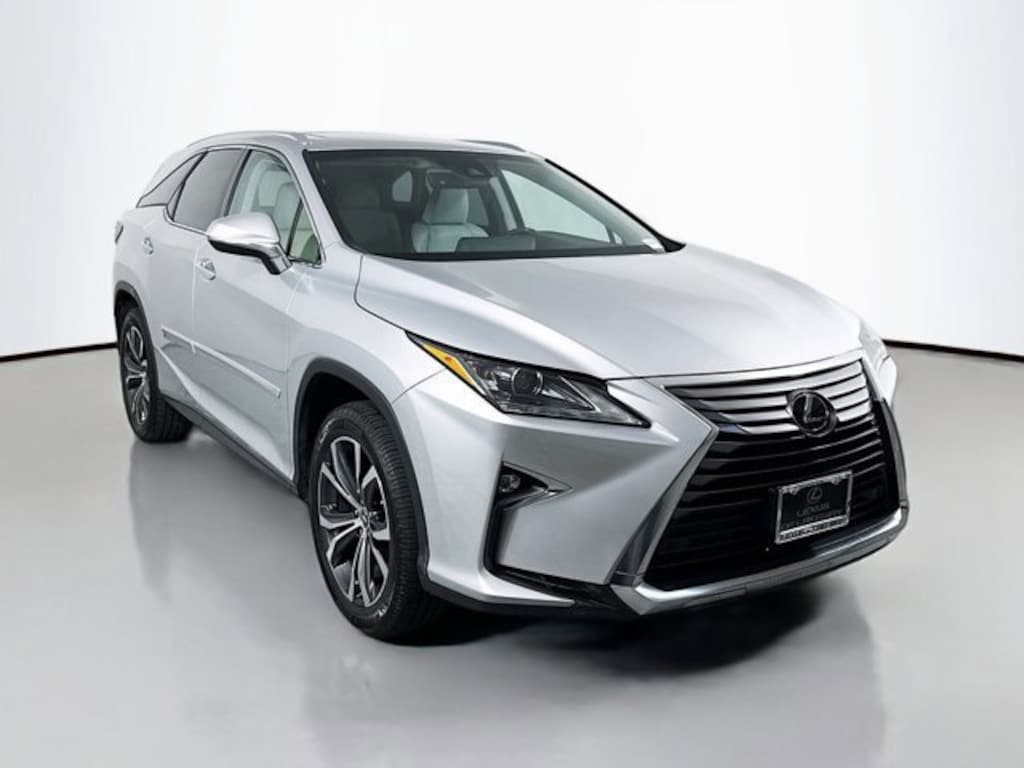 2018 Lexus RX 350L Premium Recent Arrival! Clean CARFAX. CARFAX One-Owner. Stratus Gray Leather, 12.3 Navigation System Package, Blind Spot Monitor w/Rear Cross Traffic Alert, Heated & Ventilated Front Bucket Seats, Heated Wood Steering Wheel, Illuminated & Wood Door Trim, Intelligent Clearance Sonar w/Autobrake, Premium Package, Tilt & Slide Sun/Moon Roof, Wheels: 20 High-Gloss Machined, 3.54 Axle Ratio, 3rd row seats: split-bench, 4-Wheel Disc Brakes, 9 Speakers, ABS brakes, Accessory Package, Adaptive suspension, Air Conditioning, Alloy Wheel Locks, Alloy wheels, AM/FM radio: SiriusXM, Anti-whiplash front head restraints, Auto High-beam Headlights, Auto tilt-away steering wheel, Auto-dimming door mirrors, Auto-dimming Rear-View mirror, Automatic temperature control, Brake assist, Bumpers: body-color, Cargo Net, Carpet Cargo Mat, CD player, Compass, Delay-off headlights, Driver door bin, Driver vanity mirror, Dual front impact airbags, Dual front side impact airbags, Electronic Stability Control, Emergency communication system, Exterior Parking Camera Rear, Four wheel independent suspension, Front anti-roll bar, Front Bucket Seats, Front Center Armrest, Front dual zone A/C, Front fog lights, Front reading lights, Fully automatic headlights, Garage door transmitter: HomeLink, Heated door mirrors, Heated front seats, Heated steering wheel, Illuminated Door Sills, Illuminated entry, Key Gloves, Knee airbag, Leather Shift Knob, Leather steering wheel, Low tire pressure warning, Memory seat, Occupant sensing airbag, Outside temperature display, Overhead airbag, Overhead console, Panic alarm, Passenger door bin, Passenger vanity mirror, Power door mirrors, Power driver seat, Power Liftgate, Power passenger seat, Power steering, Power windows, Radio data system, Radio: AM/FM/CD Lexus Display Audio, Rain sensing wipers, Rear air conditioning, Rear anti-roll bar, Rear reading lights, Rear seat center armrest, Rear side impact airbag, Rear window defroster, Rear window wiper, Reclining 3rd row seat, Remote keyless entry, Roof rack: rails only, Security system, Semi-Aniline Leather Seat Trim, Speed control, Speed-sensing steering, Split folding rear seat, Spoiler, Steering wheel memory, Steering wheel mounted audio controls, Tachometer, Telescoping steering wheel, Tilt steering wheel, Touchless Power Back Door, Traction control, Trip computer, Turn signal indicator mirrors, Variably intermittent wipers, Ventilated front seats, Wheels: 20 x 8 F Sport w/Dark Metallic Finish, Stratus Gray Leather, 12.3 Navigation System Package, Blind Spot Monitor w/Rear Cross Traffic Alert, Heated & Ventilated Front Bucket Seats, Heated Wood Steering Wheel, Illuminated & Wood Door Trim, Intelligent Clearance Sonar w/Autobrake, Premium Package, Tilt & Slide Sun/Moon Roof, Wheels: 20 High-Gloss Machined. Silver 2018 Lexus RX 350L Premium FWD 8-Speed Automatic 3.5L V6 DOHC 24V