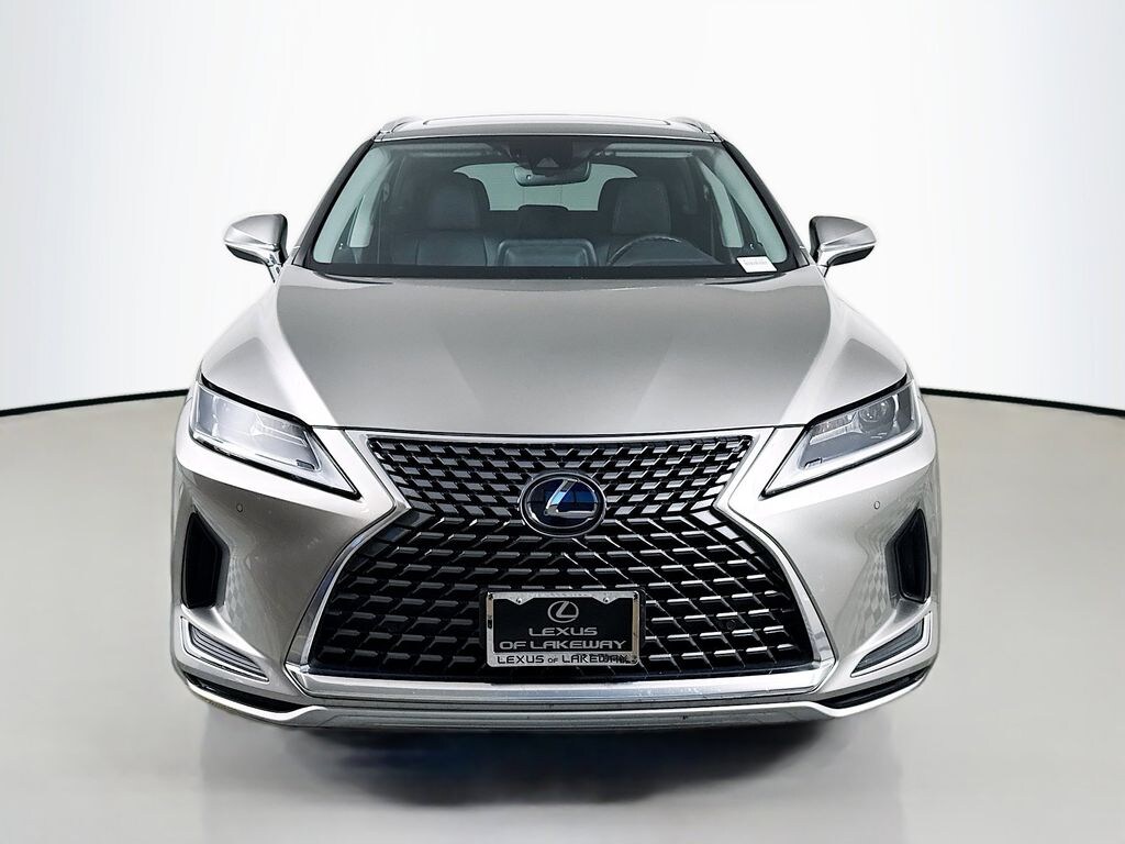 2020 Lexus RX 450h Clean CARFAX. CARFAX One-Owner. 3.5L V6 DOHC VVT-i 24V, AWD, Black w/Semi-Aniline Leather Seat Trim, Lexus Memory System, Power Folding Auto-Dimming Outside Mirrors, Premium Package, Rear Armrest Storage Compartment, Wood Door Trim, 3.54 Axle Ratio, 4-Wheel Disc Brakes, 9 Speakers, ABS brakes, Air Conditioning, All-Weather Floor Mats w/Cargo Tray, Alloy wheels, AM/FM radio: SiriusXM, AM/FM/CD Radio, Anti-whiplash front head restraints, Apple CarPlay/Android Auto, Auto High-beam Headlights, Auto tilt-away steering wheel, Auto-dimming door mirrors, Auto-dimming Rear-View mirror, Automatic temperature control, Blind Spot Monitor & Rear Cross-Traffic Alert (BC), Brake assist, Bumpers: body-color, CD player, Delay-off headlights, Driver door bin, Driver vanity mirror, Dual front impact airbags, Dual front side impact airbags, Electronic Stability Control, Emergency communication system: Lexus Enform Safety Connect, Exterior Parking Camera Rear, Four wheel independent suspension, Front anti-roll bar, Front Bucket Seats, Front Center Armrest, Front dual zone A/C, Front fog lights, Front reading lights, Fully automatic headlights, Garage door transmitter: HomeLink, Genuine wood console insert, Genuine wood door panel insert, Heated door mirrors, Heated Front Seats, Illuminated entry, Knee airbag, Lane Departure Warning System, Leather Shift Knob, Leather steering wheel, Low tire pressure warning, NuLuxe Seat Trim, Occupant sensing airbag, Outside temperature display, Overhead airbag, Overhead console, Panic alarm, Passenger door bin, Passenger vanity mirror, Power door mirrors, Power driver seat, Power Liftgate, Power passenger seat, Power steering, Power Tilt & Slide Moonroof, Power windows, Radio data system, Rain sensing wipers, Rear anti-roll bar, Rear reading lights, Rear seat center armrest, Rear side impact airbag, Rear window defroster, Rear window wiper, Remote keyless entry, Roof Rail, Security system, Speed control, Speed-sensing steering, Split folding rear seat, Spoiler, Steering wheel mounted audio controls, Telescoping steering wheel, Tilt steering wheel, Traction control, Trip computer, Turn signal indicator mirrors, Variably intermittent wipers, Wheels: 18 Split-5-Spoke Alloy, L-CERTIFIED, 3.5L V6 DOHC VVT-i 24V, AWD, Black w/Semi-Aniline Leather Seat Trim, Lexus Memory System, Power Folding Auto-Dimming Outside Mirrors, Premium Package, Rear Armrest Storage Compartment, Wood Door Trim. Atomic Silver 2020 Lexus RX 450h AWD eCVT 3.5L V6 DOHC VVT-i 24V