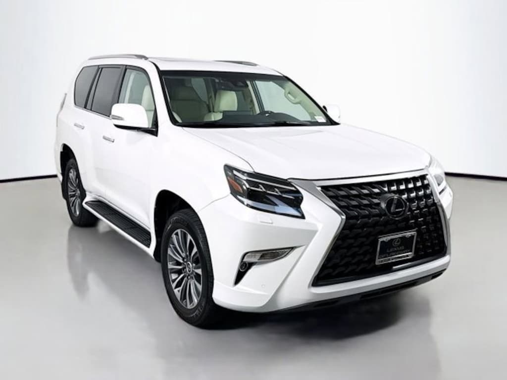 2022 Lexus GX 460 Luxury Off Road Recent Arrival! Clean CARFAX. CARFAX One-Owner. Exhaust Tip, Mark Levinson Surround Sound System, Navigation System, Off Road Package, Outside Rearview Mirrors w/Camera, Panoramic View & Multi-Terrain Monitor, 19 x 7.5J Aluminum Alloy Wheels, 3.909 Axle Ratio, 3rd row seats: split-bench, 4-Wheel Disc Brakes, 9 Speakers, ABS brakes, Adaptive suspension, Air Conditioning, All-Weather Floor Liners w/Cargo Mat, Alloy Wheel Locks, Alloy wheels, AM/FM radio: SiriusXM, Anti-whiplash front head restraints, Apple CarPlay/Android Auto, Auto High-beam Headlights, Auto tilt-away steering wheel, Auto-dimming door mirrors, Auto-dimming Rear-View mirror, Auto-leveling suspension, Automatic temperature control, Brake assist, Bumpers: body-color, Cargo Net, CD player, Compass, Delay-off headlights, Door Edge Film by 3M, Driver door bin, Driver vanity mirror, Driver's Seat Mounted Armrest, Dual front impact airbags, Dual front side impact airbags, Electronic Stability Control, Emergency communication system, Exterior Parking Camera Rear, Front anti-roll bar, Front Bucket Seats, Front dual zone A/C, Front fog lights, Front reading lights, Front wheel independent suspension, Fully automatic headlights, Garage door transmitter: HomeLink, Genuine wood console insert, Genuine wood dashboard insert, Genuine wood door panel insert, Glass Breakage Sensor, Headlight cleaning, Heated & Ventilated Front Bucket Seats, Heated door mirrors, Heated front seats, Heated rear seats, Heated steering wheel, Illuminated entry, Illuminated running boards, Key Glove, Knee airbag, Leather Shift Knob, Leather steering wheel, Low tire pressure warning, Memory seat, Occupant sensing airbag, Outside temperature display, Overhead airbag, Overhead console, Panic alarm, Passenger door bin, Passenger seat mounted armrest, Passenger vanity mirror, Power door mirrors, Power driver seat, Power moonroof, Power passenger seat, Power steering, Power windows, Radio data system, Radio: Lexus Multimedia System w/Navigation, Rain sensing wipers, Rear air conditioning, Rear anti-roll bar, Rear reading lights, Rear seat center armrest, Rear side impact airbag, Rear window defroster, Rear window wiper, Remote keyless entry, Roof rack: rails only, Security system, Semi-Aniline Leather Seat Trim, Speed control, Speed-sensing steering, Split folding rear seat, Spoiler, Steering wheel memory, Steering wheel mounted audio controls, Tachometer, Telescoping steering wheel, Tilt steering wheel, Traction control, Trip computer, Turn signal indicator mirrors, Variably intermittent wipers, Ventilated front seats, L/Certified, Exhaust Tip, Mark Levinson Surround Sound System, Navigation System, Off Road Package, Outside Rearview Mirrors w/Camera, Panoramic View & Multi-Terrain Monitor. Starfire Pearl 2022 Lexus GX 460 Luxury Off Road 4WD 6-Speed Automatic with Sequential Shift ECT 4.6L V8 DOHC Dual VVT-i 32V