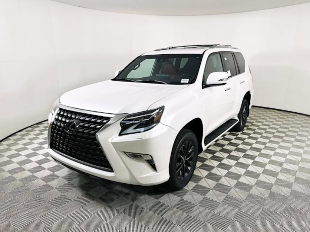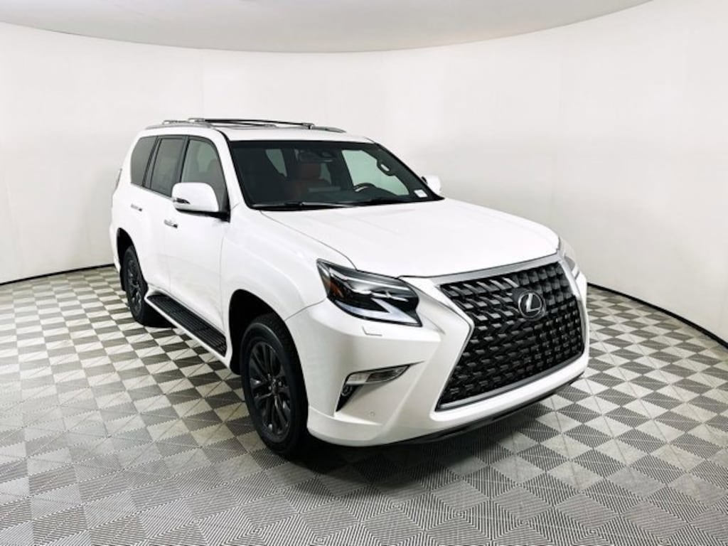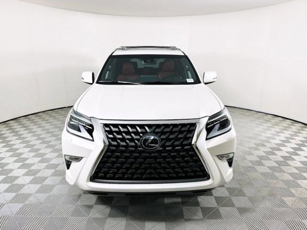 2023 Lexus GX 460 Recent Arrival! Clean CARFAX. 18 x 7.5J Aluminum Alloy Wheels, 3.909 Axle Ratio, 3rd row seats: split-bench, 4-Wheel Disc Brakes, 9 Speakers, ABS brakes, Air Conditioning, All Weather Floor Liners, Alloy Wheel Locks, Alloy wheels, AM/FM radio: SiriusXM, Anti-whiplash front head restraints, Apple CarPlay/Android Auto, Auto High-beam Headlights, Auto tilt-away steering wheel, Auto-dimming Rear-View mirror, Automatic temperature control, Brake assist, Bumpers: body-color, Cargo Net, Cargo-Area Tonneau Cover, Carpet Cargo Mat, CD player, Compass, Cross Bars, Delay-off headlights, Door Edge Film by 3M, Driver door bin, Driver vanity mirror, Driver's Seat Mounted Armrest, Dual Front & Rear Auto Air Conditioner, Dual front impact airbags, Dual front side impact airbags, Electronic Stability Control, Emergency communication system: Safety Connect (3-year trial), Exhaust Tip, Exterior Parking Camera Rear, Front & Rear Heated Seats, Front anti-roll bar, Front Bucket Seats, Front dual zone A/C, Front reading lights, Front wheel independent suspension, Fully automatic headlights, Garage door transmitter: HomeLink, Headlamp Washers, Heated door mirrors, Heated Wood & Leather Steering Wheel, Illuminated entry, Illuminated running boards, Key Gloves, Knee airbag, Leather Shift Knob, Leather steering wheel, LED Front Fog & Driving Lamp, Low tire pressure warning, Memory seat, Navigation system: Lexus Enform Dynamic Navigation, NuLuxe Seat Trim, NuLuxe Seat Trim (EA), Occupant sensing airbag, Outside temperature display, Overhead airbag, Overhead console, Panic alarm, Passenger door bin, Passenger seat mounted armrest, Passenger vanity mirror, Power door mirrors, Power driver seat, Power moonroof, Power passenger seat, Power steering, Power windows, Premium Package, Premium Paint, Radio data system, Radio: Lexus Multimedia System w/Navigation, Rear anti-roll bar, Rear reading lights, Rear seat center armrest, Rear side impact airbag, Rear window defroster, Rear window wiper, Remote keyless entry, Roof rack: rails only, Security system, Speed control, Speed-sensing steering, Split folding rear seat, Spoiler, Steering wheel memory, Steering wheel mounted audio controls, Tachometer, Telescoping steering wheel, Tilt steering wheel, Tow Hitch, Traction control, Trip computer, Turn signal indicator mirrors, Variably intermittent wipers, Ventilated Front Seats, Windshield De-Icer, Windshield Wiper Control w/Rain Sensor. White Pearl 2023 Lexus GX 460 4WD 6-Speed Automatic with Sequential Shift ECT 4.6L V8 DOHC Dual VVT-i 32V