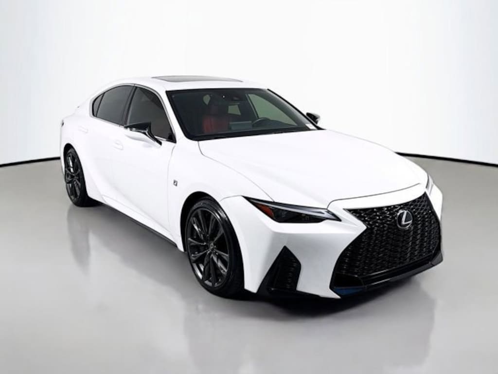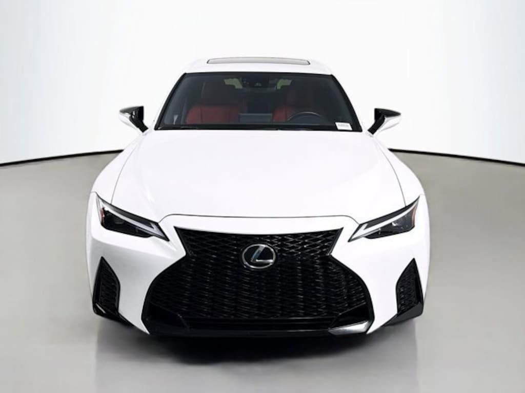 2023 Lexus IS 350 F SPORT CARFAX One-Owner. Circuit Red w/Perforated NuLuxe Seat Trim (EA), Intuitive Park Assist w/RCTB, Lexus Memory System for Driver's Seat, Memory Package, Moonroof, Outside Mirrors w/Auto Tilt-Down in Reverse, Power Tilt & Telescoping Steering Wheel, 10 Speakers, 19 Wheels, 4-Wheel Disc Brakes, ABS brakes, Air Conditioning, All-Weather Floor Liners w/Trunk Tray, Alloy wheels, AM/FM radio: SiriusXM, Apple CarPlay/Android Auto, Auto High-beam Headlights, Auto-dimming door mirrors, Auto-dimming Rear-View mirror, Automatic temperature control, Brake assist, Bumpers: body-color, CD player, Compass, Delay-off headlights, Driver door bin, Driver vanity mirror, Dual front impact airbags, Dual front side impact airbags, Electronic Stability Control, Emergency communication system: Safety Connect (3-year trial), Exterior Parking Camera Rear, Four wheel independent suspension, Front anti-roll bar, Front Bucket Seats, Front Center Armrest, Front dual zone A/C, Front fog lights, Front reading lights, Fully automatic headlights, Garage door transmitter: HomeLink, Heated & Ventilated F SPORT Seats, Heated door mirrors, Heated front seats, Heated steering wheel, Illuminated Door Sills, Illuminated entry, Knee airbag, Leather Shift Knob, Low tire pressure warning, Occupant sensing airbag, Outside temperature display, Overhead airbag, Overhead console, Panic alarm, Passenger door bin, Passenger vanity mirror, Perforated NuLuxe Seat Trim, Power door mirrors, Power driver seat, Power passenger seat, Power Rear Sunshade, Power steering, Power windows, Premium Paint (PJ), Radio data system, Radio: Multimedia System w/8 Color Touchscreen, Rain sensing wipers, Rear anti-roll bar, Rear reading lights, Rear seat center armrest, Rear side impact airbag, Rear Spoiler, Rear window defroster, Remote keyless entry, Security system, Speed control, Speed-sensing steering, Speed-Sensitive Wipers, Split folding rear seat, Spoiler, Sport steering wheel, Steering wheel mounted audio controls, Tachometer, Telescoping steering wheel, Tilt steering wheel, Traction control, Trip computer, Turn signal indicator mirrors, Variably intermittent wipers, Ventilated front seats, L/CERTIFIED, Circuit Red w/Perforated NuLuxe Seat Trim (EA), Intuitive Park Assist w/RCTB, Lexus Memory System for Driver's Seat, Memory Package, Moonroof, Outside Mirrors w/Auto Tilt-Down in Reverse, Power Tilt & Telescoping Steering Wheel. Ultra White 2023 Lexus IS 350 F SPORT RWD 8-Speed Automatic 3.5L V6 DOHC Dual VVT-i 24V