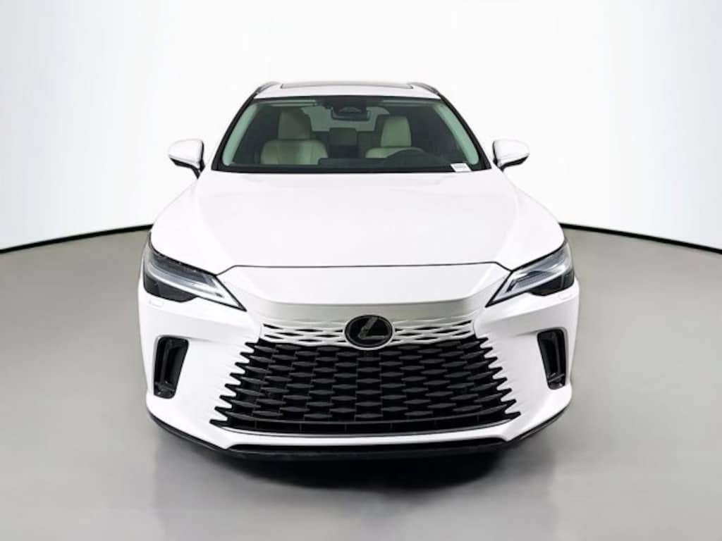2023 Lexus RX 350 Luxury Clean CARFAX. CARFAX One-Owner. AWD, Macadamia w/Ash Bamboo w/Leather Seat Trim, 10-Way Power Driver & Fr Passenger Seat Adjusters, Cold Area Package, Finish Plate Door Inner Garnish, Head-Up Display (HUD), Luxury Package, Multi-Color Illuminated Entry System, Parking Support Alert/Brake, Wireless Charger, Wood Steering Wheel w/Paddle & Heater, 12 Speakers, 3.33 Axle Ratio, 4-Wheel Disc Brakes, ABS brakes, Advanced Park, Air Conditioning, Alloy wheels, AM/FM radio: SiriusXM, Anti-whiplash front head restraints, Auto High-beam Headlights, Auto tilt-away steering wheel, Auto-dimming door mirrors, Auto-dimming Rear-View mirror, Automatic temperature control, Body Side Moldings, Brake assist, Bumpers: body-color, Carpet Cargo Mat, Compass, Delay-off headlights, Digital Key, Digital Rearview Mirror, Driver door bin, Driver vanity mirror, Dual front impact airbags, Dual front side impact airbags, Electronic Stability Control, Emergency communication system: Safety Connect (10-year trial), Exterior Parking Camera Rear, Four wheel independent suspension, Front anti-roll bar, Front Bucket Seats, Front Center Armrest, Front dual zone A/C, Front fog lights, Front reading lights, Fully automatic headlights, Garage door transmitter: HomeLink, Genuine wood console insert, Heads-Up Display, Heated & Ventilated Front & Rear Seats, Heated & Ventilated Front Bucket Seats, Heated door mirrors, Heated front seats, Heated steering wheel, Illuminated entry, Leather Shift Knob, Leather steering wheel, Low tire pressure warning, Memory seat, Navigation System, Occupant sensing airbag, Outside temperature display, Overhead airbag, Overhead console, Panic alarm, Panoramic View Monitor w/BSM, Passenger door bin, Passenger vanity mirror, Power door mirrors, Power driver seat, Power Folding Rear Seats, Power Liftgate, Power moonroof, Power passenger seat, Power Rear Door w/Kick Sensor, Power steering, Power Tilt & Slide Moonroof, Power windows, Premium Triple-Beam LED Headlamps, Radio data system, Radio: Lexus Interface w/14 HD Touchscreen Display, Radio: Lexus Interface w/Mark Levinson Audio, Rain sensing wipers, Rear air conditioning, Rear anti-roll bar, Rear reading lights, Rear seat center armrest, Rear side impact airbag, Rear window defroster, Rear window wiper, Remote keyless entry, Security system, Semi-Aniline/Synthetic Suede Leather Seat Trim, Speed control, Speed-sensing steering, Split folding rear seat, Spoiler, Steering wheel memory, Steering wheel mounted audio controls, Tachometer, Telescoping steering wheel, Tilt steering wheel, Traction control, Traffic Jam Assist, Trip computer, Turn signal indicator mirrors, Variably intermittent wipers, Wheels: 21, Wireless Apple CarPlay/Wireless Android Auto, L-CERTIFIED, AWD, Macadamia w/Ash Bamboo w/Leather Seat Trim, 10-Way Power Driver & Fr Passenger Seat Adjusters, Cold Area Package, Finish Plate Door Inner Garnish, Head-Up Display (HUD), Luxury Package, Multi-Color Illuminated Entry System, Parking Support Alert/Brake, Wireless Charger, Wood Steering Wheel w/Paddle & Heater. Eminent White Pearl 2023 Lexus RX 350 Luxury AWD 8-Speed Automatic 2.4L I4 PDI Turbocharged DOHC 16V LEV3-SULEV30 275hp