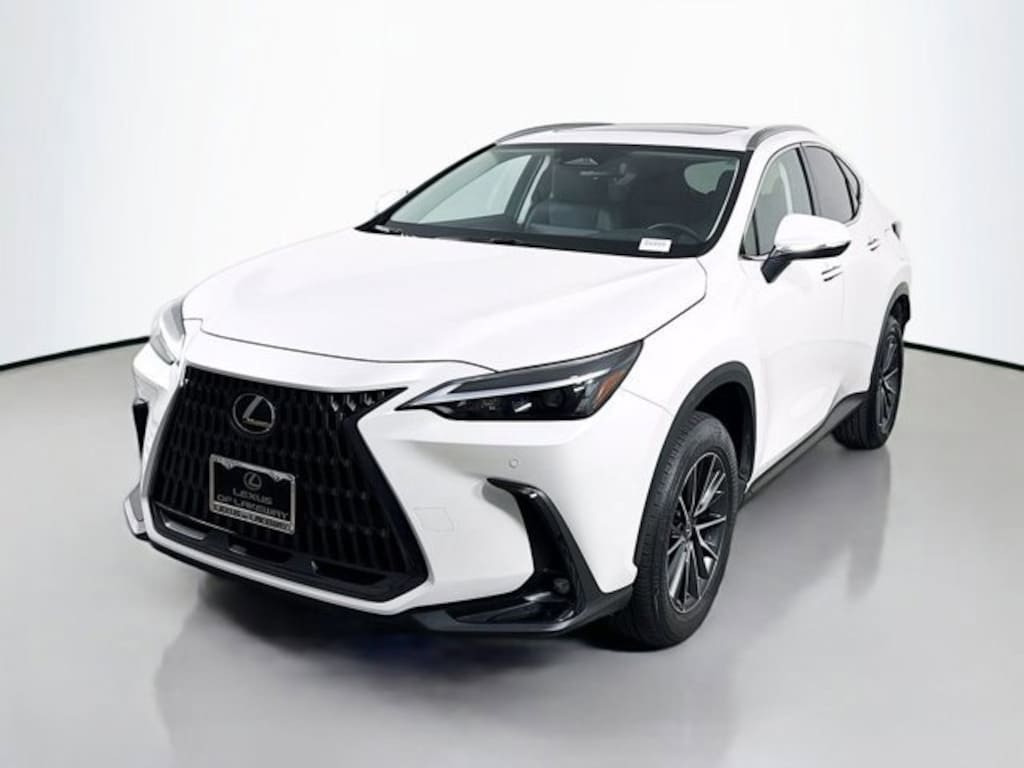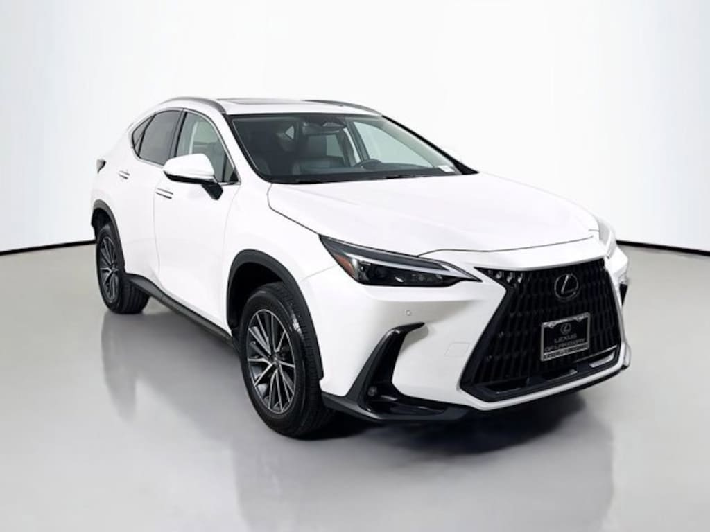 2024 Lexus NX 350h Premium Recent Arrival! Clean CARFAX. 2.5L I4 DOHC 16V, Premium Package, Smart Phone Convenience Package, 10 Speakers, 18 Wheels, 4-Wheel Disc Brakes, ABS brakes, Air Conditioning, Alloy wheels, AM/FM radio: SiriusXM, Anti-whiplash front head restraints, Auto High-beam Headlights, Auto tilt-away steering wheel, Auto-dimming door mirrors, Auto-dimming Rear-View mirror, Automatic temperature control, Axle Ratio: 10.781, Brake assist, Bumpers: body-color, Cold Area Package, Delay-off headlights, Driver door bin, Driver vanity mirror, Dual front impact airbags, Dual front side impact airbags, Electronic Stability Control, Emergency communication system, Exterior Parking Camera Rear, Four wheel independent suspension, Front anti-roll bar, Front Bucket Seats, Front Center Armrest, Front dual zone A/C, Front fog lights, Front reading lights, Fully automatic headlights, Garage door transmitter: HomeLink, Heated & Ventilated Front Bucket Seats, Heated door mirrors, Heated front seats, Heated Leather Steering Wheel w/Paddle, Illuminated entry, Knee airbag, Leather Shift Knob, Leather steering wheel, Low tire pressure warning, Memory seat, Navigation system: Drive Connect Cloud Navigation (subscription required), NuLuxe Seat Trim, Occupant sensing airbag, Outside temperature display, Overhead airbag, Overhead console, Panic alarm, Passenger door bin, Passenger vanity mirror, Power door mirrors, Power driver seat, Power Liftgate, Power moonroof, Power passenger seat, Power steering, Power windows, Premium Paint (PJ), Radio data system, Rain sensing wipers, Rear anti-roll bar, Rear reading lights, Rear seat center armrest, Rear window defroster, Rear window wiper, Remote keyless entry, Security system, Single Color Illumination, Speed control, Speed-sensing steering, Speed-Sensitive Wipers, Split folding rear seat, Spoiler, Steering wheel memory, Steering wheel mounted audio controls, Tachometer, Telescoping steering wheel, Tilt steering wheel, Towing Package (2000 lbs), Traction control, Trip computer, Turn signal indicator mirrors, Variably intermittent wipers, Ventilated front seats, Wiper & Window Deicer, L-CERTIFIED, 2.5L I4 DOHC 16V, Premium Package, Smart Phone Convenience Package. Eminent White Pearl 2024 Lexus NX 350h Premium AWD eCVT 2.5L I4 DOHC 16V