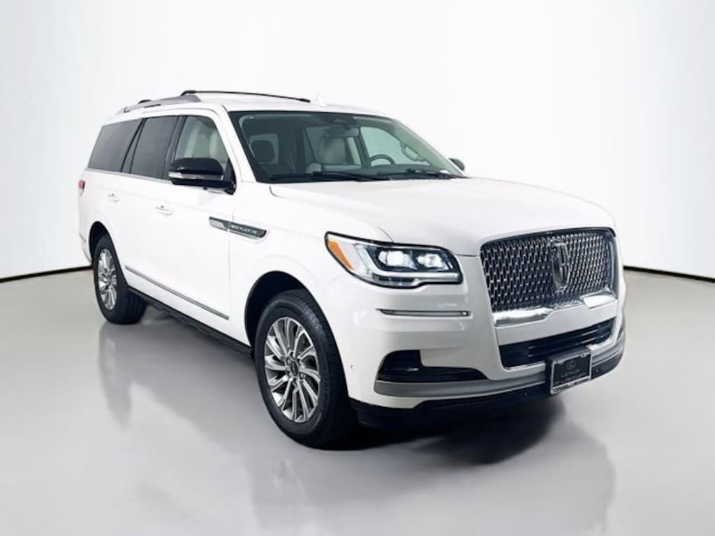 2024 Lincoln Navigator Premiere Clean CARFAX. CARFAX One-Owner. 4WD, Sandstone w/Lincoln Soft Touch Auto Htd/Ventiltd Comfort Seats, Equipment Group 100A Standard, 14 Speakers, 2nd Row Htd/Ventilated 40/20/40 Split Bench Seat, 3.73 Axle Ratio, 3rd row seats: split-bench, 4-Wheel Disc Brakes, ABS brakes, Adaptive suspension, Adjustable pedals, Air Conditioning, Alloy wheels, AM/FM radio: SiriusXM with 360L, Apple CarPlay/Android Auto, Audio memory, Auto High-beam Headlights, Auto Start-Stop Technology, Auto tilt-away steering wheel, Auto-dimming door mirrors, Auto-dimming Rear-View mirror, Auto-leveling suspension, Automatic temperature control, Bodyside moldings, Brake assist, Bumpers: body-color, Compass, Delay-off headlights, Driver door bin, Driver vanity mirror, Driver's Seat Mounted Armrest, Dual front impact airbags, Dual front side impact airbags, Electronic Stability Control, Emergency communication system: 911 Assist, Exterior Parking Camera Rear, Four wheel independent suspension, Front anti-roll bar, Front Bucket Seats, Front dual zone A/C, Front fog lights, Front License Plate Bracket, Front reading lights, Fully automatic headlights, Garage door transmitter, Genuine wood dashboard insert, Genuine wood door panel insert, Heated door mirrors, Heated front seats, Heated rear seats, Heated steering wheel, HVAC memory, Illuminated entry, Lane Departure Warning System, Leather steering wheel, Lincoln Soft Touch Auto Htd/Ventiltd Comfort Seats, Low tire pressure warning, Memory seat, Navigation system: Connected Navigation (1-year trial), Occupant sensing airbag, Outside temperature display, Overhead airbag, Overhead console, Panic alarm, Passenger door bin, Passenger seat mounted armrest, Passenger vanity mirror, Pedal memory, Power adjustable rear head restraints, Power door mirrors, Power driver seat, Power Liftgate, Power passenger seat, Power steering, Power windows, Radio data system, Radio: Revel Audio System w/Satelllite/AM/FM/HD, Rain sensing wipers, Rear air conditioning, Rear anti-roll bar, Rear reading lights, Rear window defroster, Rear window wiper, Reclining 3rd row seat, Remote keyless entry, Security system, SiriusXM w/360L, Speed control, Speed-sensing steering, Speed-Sensitive Wipers, Split folding rear seat, Spoiler, Steering wheel memory, Steering wheel mounted audio controls, SYNC 4 Communications & Entertainment System, Tachometer, Telescoping steering wheel, Tilt steering wheel, Traction control, Trip computer, Turn signal indicator mirrors, Variably intermittent wipers, Ventilated front seats, Ventilated rear seats, Voice-Activated Touchscreen Navigation System, Wheels: 20 12-Spoke Bright Machined Aluminum, 4WD, Sandstone w/Lincoln Soft Touch Auto Htd/Ventiltd Comfort Seats, Equipment Group 100A Standard. Pristine White Metallic Tri-Coat 2024 Lincoln Navigator Premiere 4WD 10-Speed Automatic V6