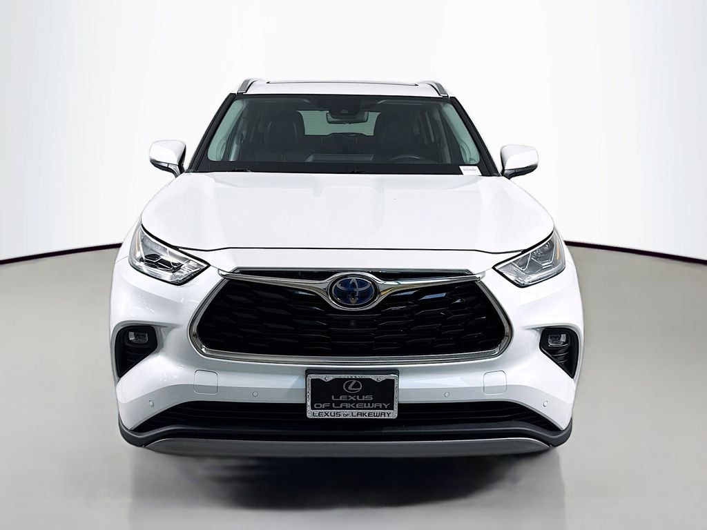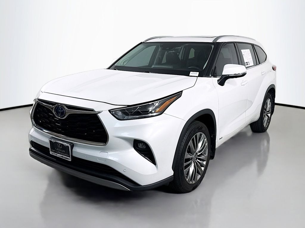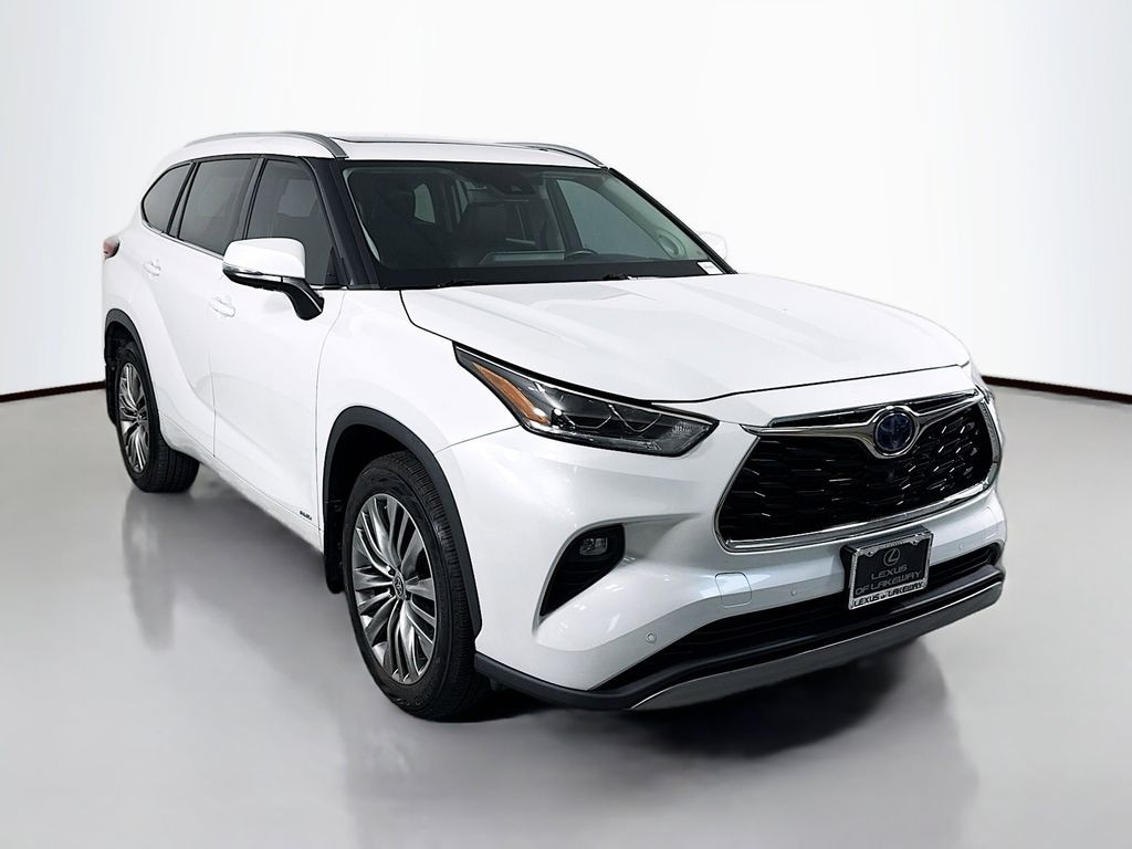 2022 Toyota Highlander Hybrid Platinum Clean CARFAX. 2.5L I4 PDI Hybrid DOHC 16V LEV3-SULEV30 186hp, High Grade LED, Panoramic Moonroof, Panoramic View Monitor, Platinum Package, 11 Speakers, 20 Alloy Wheels, 3rd row seats: split-bench, 4-Wheel Disc Brakes, ABS brakes, Air Conditioning, Alloy wheels, AM/FM radio: SiriusXM, Apple CarPlay/Android Auto, Auto High-beam Headlights, Auto-dimming Rear-View mirror, Automatic temperature control, Axle Ratio TBD, Brake assist, Bumpers: body-color, Delay-off headlights, Driver door bin, Driver vanity mirror, Dual front impact airbags, Dual front side impact airbags, Electronic Stability Control, Emergency communication system: Safety Connect with 1-year trial, Four wheel independent suspension, Front anti-roll bar, Front Bucket Seats, Front Center Armrest, Front dual zone A/C, Front fog lights, Front reading lights, Fully automatic headlights, Garage door transmitter: HomeLink, Heads-Up Display, Heated door mirrors, Heated Front Bucket Seats, Heated front seats, Heated rear seats, Heated steering wheel, Illuminated entry, Knee airbag, Leather Seat Trim, Leather Shift Knob, Low tire pressure warning, Memory seat, Navigation system: Dynamic Navigation (3-year trial), Occupant sensing airbag, Outside temperature display, Overhead airbag, Overhead console, Panic alarm, Passenger door bin, Passenger vanity mirror, Power door mirrors, Power driver seat, Power Liftgate, Power moonroof, Power passenger seat, Power steering, Power windows, Radio: JBL Premium Audio System, Rain sensing wipers, Rear air conditioning, Rear anti-roll bar, Rear reading lights, Rear window defroster, Rear window wiper, Reclining 3rd row seat, Remote keyless entry, Roof rack: rails only, Security system, Speed control, Speed-sensing steering, Split folding rear seat, Spoiler, Steering wheel mounted audio controls, Telescoping steering wheel, Tilt steering wheel, Traction control, Trip computer, Turn signal indicator mirrors, Variably intermittent wipers, Ventilated front seats, 2.5L I4 PDI Hybrid DOHC 16V LEV3-SULEV30 186hp, High Grade LED, Panoramic Moonroof, Panoramic View Monitor, Platinum Package. Wind Chill Pearl 2022 Toyota Highlander Hybrid Platinum AWD eCVT 2.5L I4 PDI Hybrid DOHC 16V LEV3-SULEV30 186hp